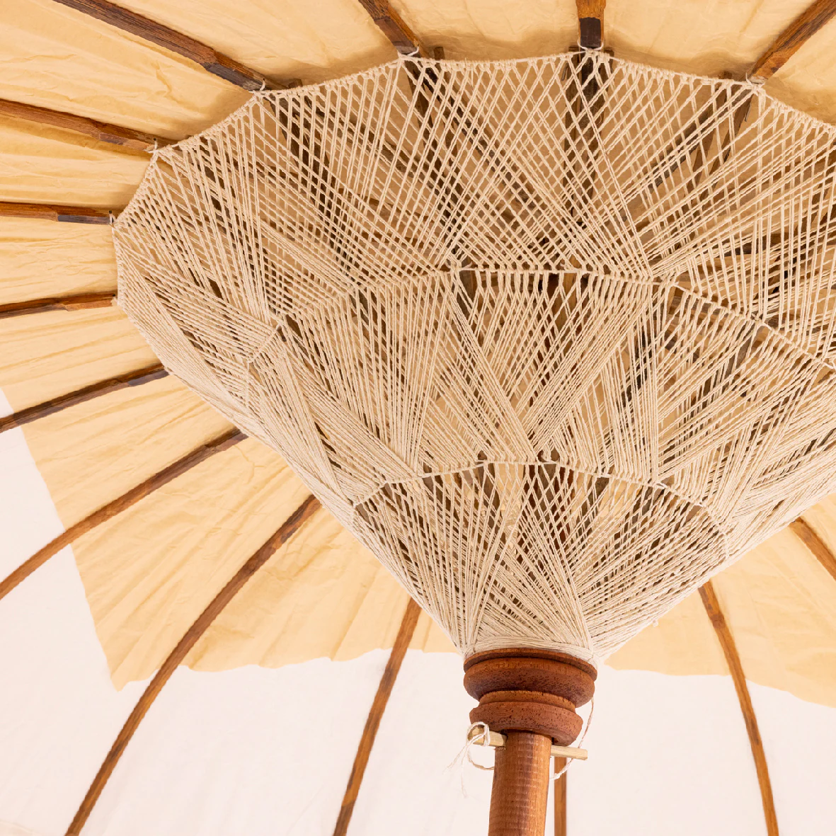 Mahogany Parasol - White Cotton Fabric with Tassels